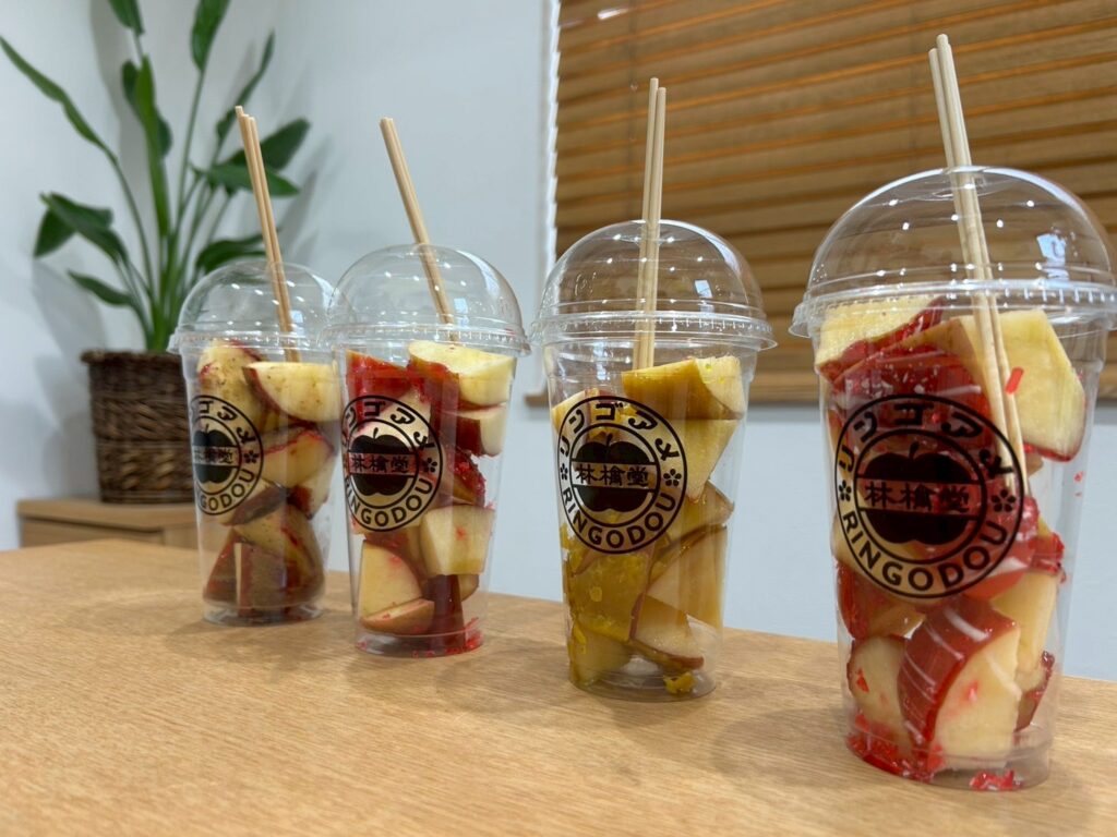 食べやすくカットされカップに入ったリンゴアメは、見た目もかわいくて写真映えも抜群✨