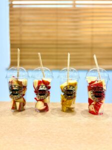 食べやすくカットされカップに入ったリンゴアメは、見た目もかわいくて写真映えも抜群✨